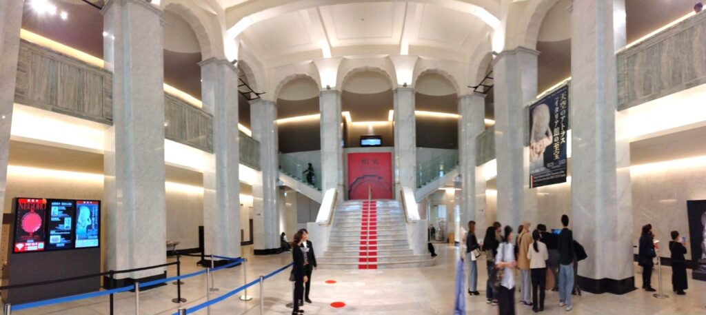 昭和初期のモダン建築でありながら、日本的意匠を部分的に取り入れているのが特徴だ。たとえば、屋根まわりや外壁に和風の要素を組み込んでいる。外観は直線的で重厚なモダンデザイン。石造り風の壁面が美術館らしい落ち着きを与えている。内部空間は天井の高い展示室を備え、自然光を取り入れる工夫がなされている。