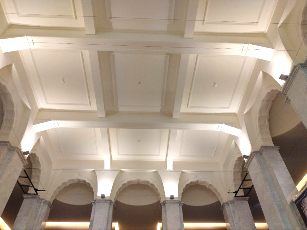 近年の改修では、開館当時の天井と天井に隠れていた梁が発見された。この迫力ある梁を活かす形で、ホール天井が整備されている。展示品に負けないほどの建物自体の値打ちがある大阪市立美術館をぜひ訪れてほしい。(かの)