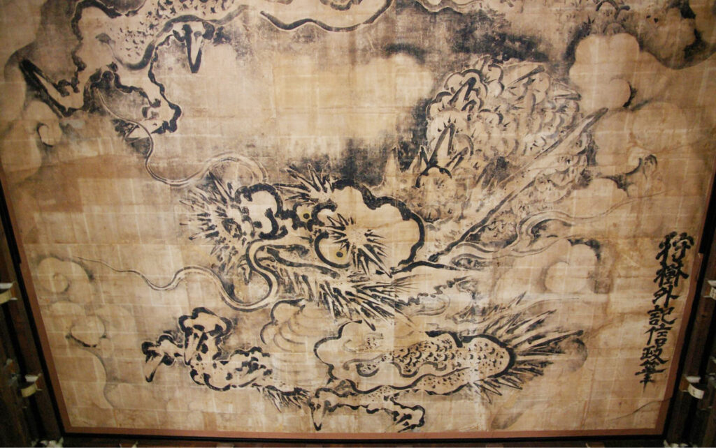 堺市にある南宗寺(正式には南宗禅寺)は1557年、戦国大名・三好長慶が創建した。ここには国指定重要文化財の建築として、仏殿・山門(甘露門)・唐門の3つが登録されている。1653年〈承応2〉建立の仏殿は、禅宗様式の技法を用いた、大阪府下で唯一の「仏殿」形式。桁行・梁間各三間、入母屋・本瓦葺、裳階(もこし)付。天井には有名な「八方睨みの龍」がある。