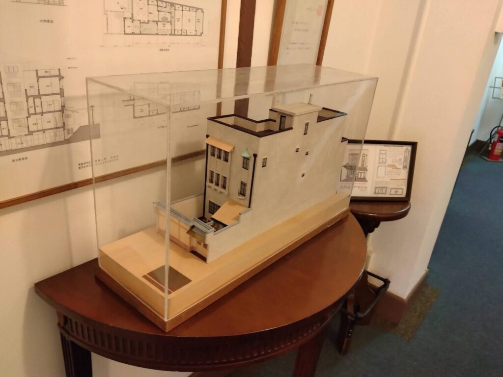 事業の成功を受け、1935年(昭和10年)に自身の本宅としてこのビルを建てた。当時、付近には江戸堀川が流れており、水辺の風景に映える優美な住宅であった。大阪大空襲により周囲の店舗は焼失したが、鉄筋コンクリート造であったこの邸宅は奇跡的に焼け残った。
