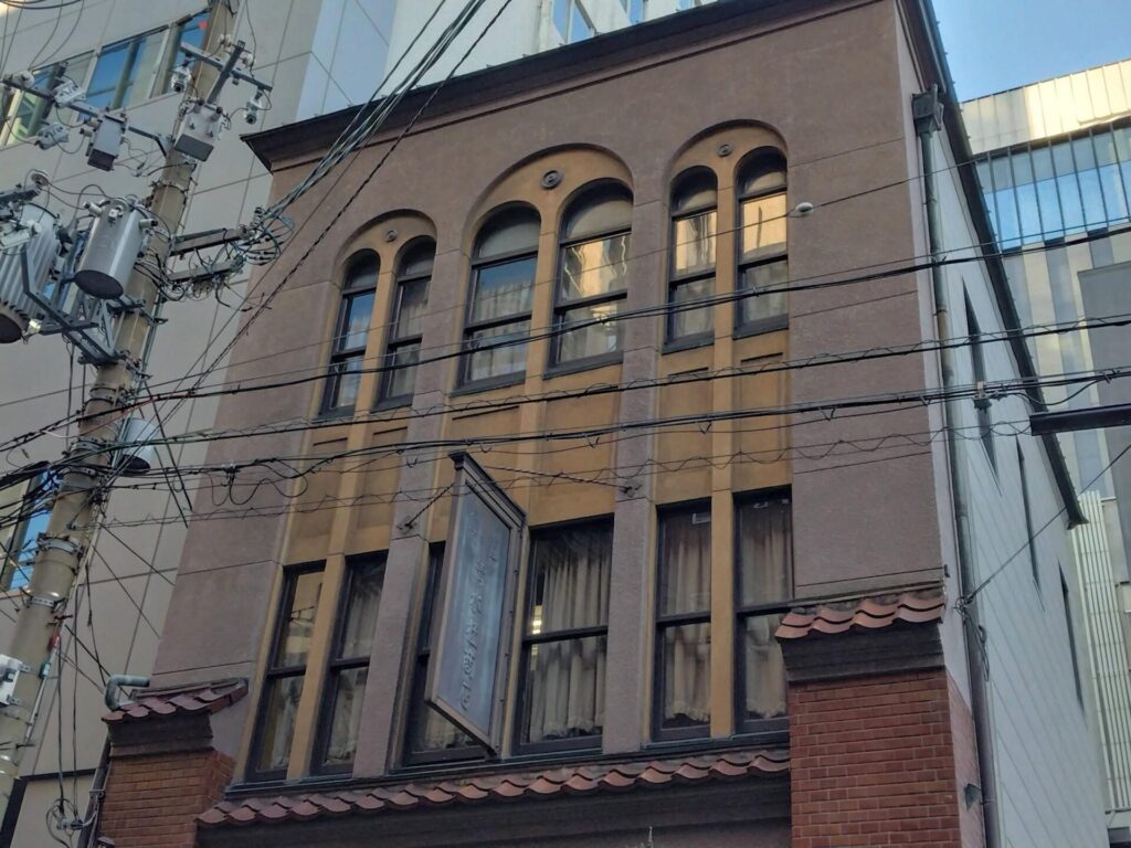 木造3階建で典型的な町家の建物であるこのビルの魅力は、派手な装飾を排した「シンプルでありながら力強い」デザインにある。外壁を覆うのは、1階ファサードの両角にレンガ積み、洋瓦風の小庇、そしてワイヤーで釣られた大庇によって重厚な風格を漂わせている。縦に長く伸びた窓と、それを強調する壁面のラインが、建物に均整のとれた美しさを与えている。アール型に仕上げられた上部にはさりげなく幾何学的な装飾が施されており、当時のモダニズムへの傾倒がうかがえる。建物東側はパーキングになっているため、側面が見える状態になっている。ただしこちらの外壁は全面的に張り替えられている。